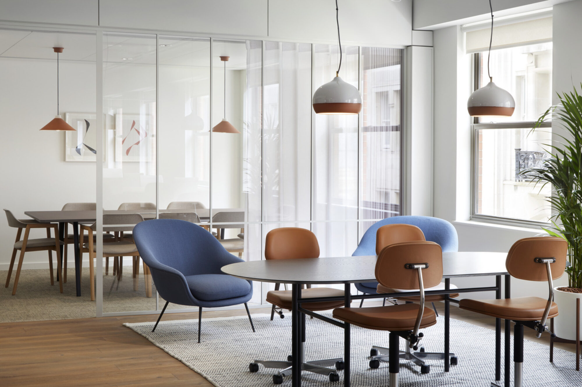 The second floor perfectly maximises space, combining fitted workstations and meeting rooms with informal breakout spaces and hot desks, in addition to a private terrace.